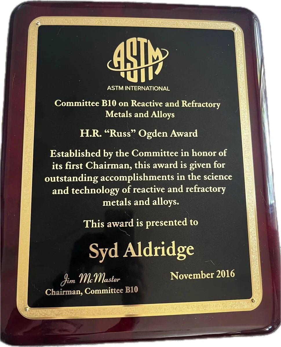 To the right is an award given to Syd for outstanding accomplishments within his chosen scientific field - a passion that was first ignited during his time at William Ellis some sixty years prior to the award being given.